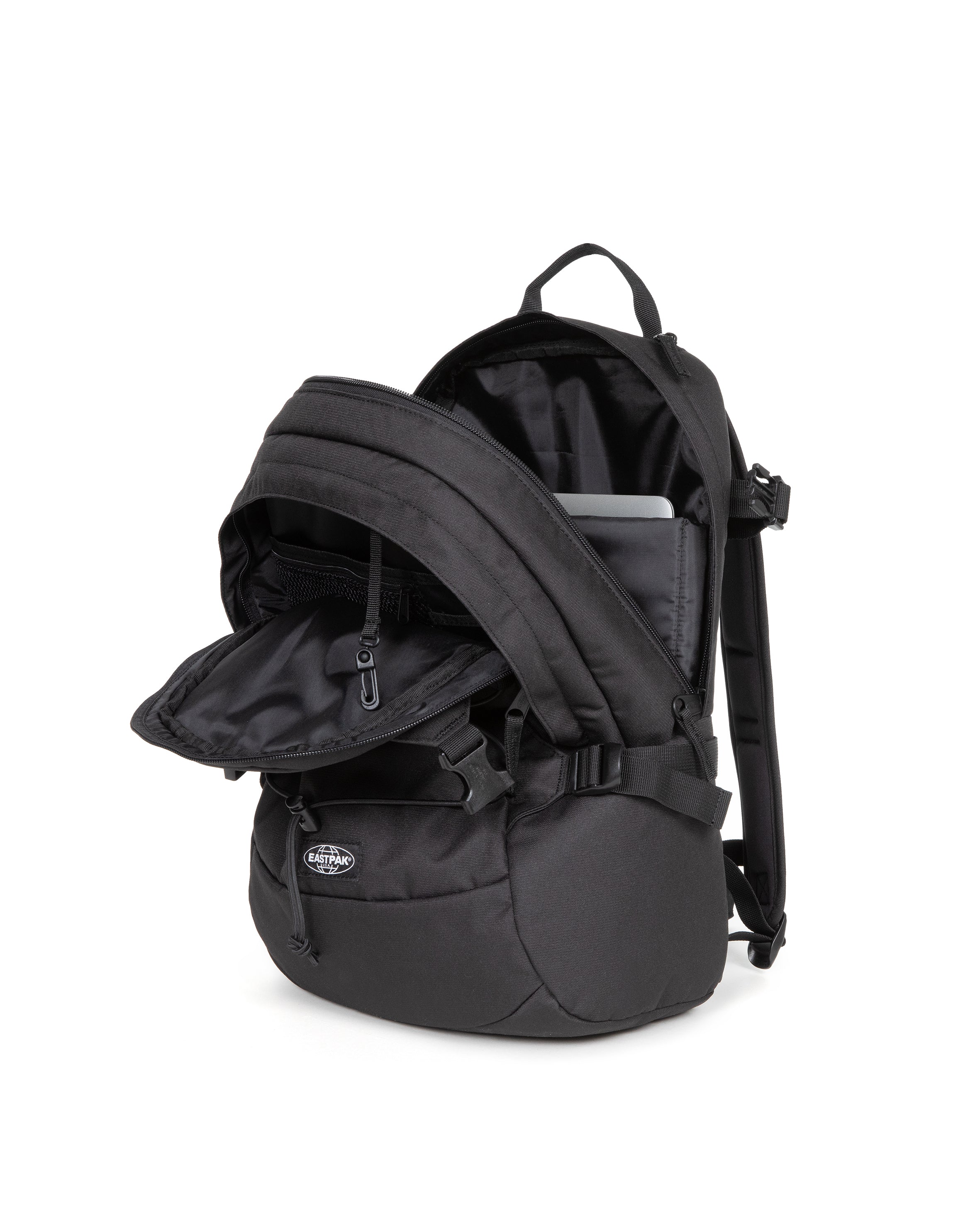 Our smart and spacious backpack with two main compartments. Stash your essentials in the zip-fastening compartments, built-in laptop sleeve and bottle holder. Use the bungee cord to attach additional gear on the go.
