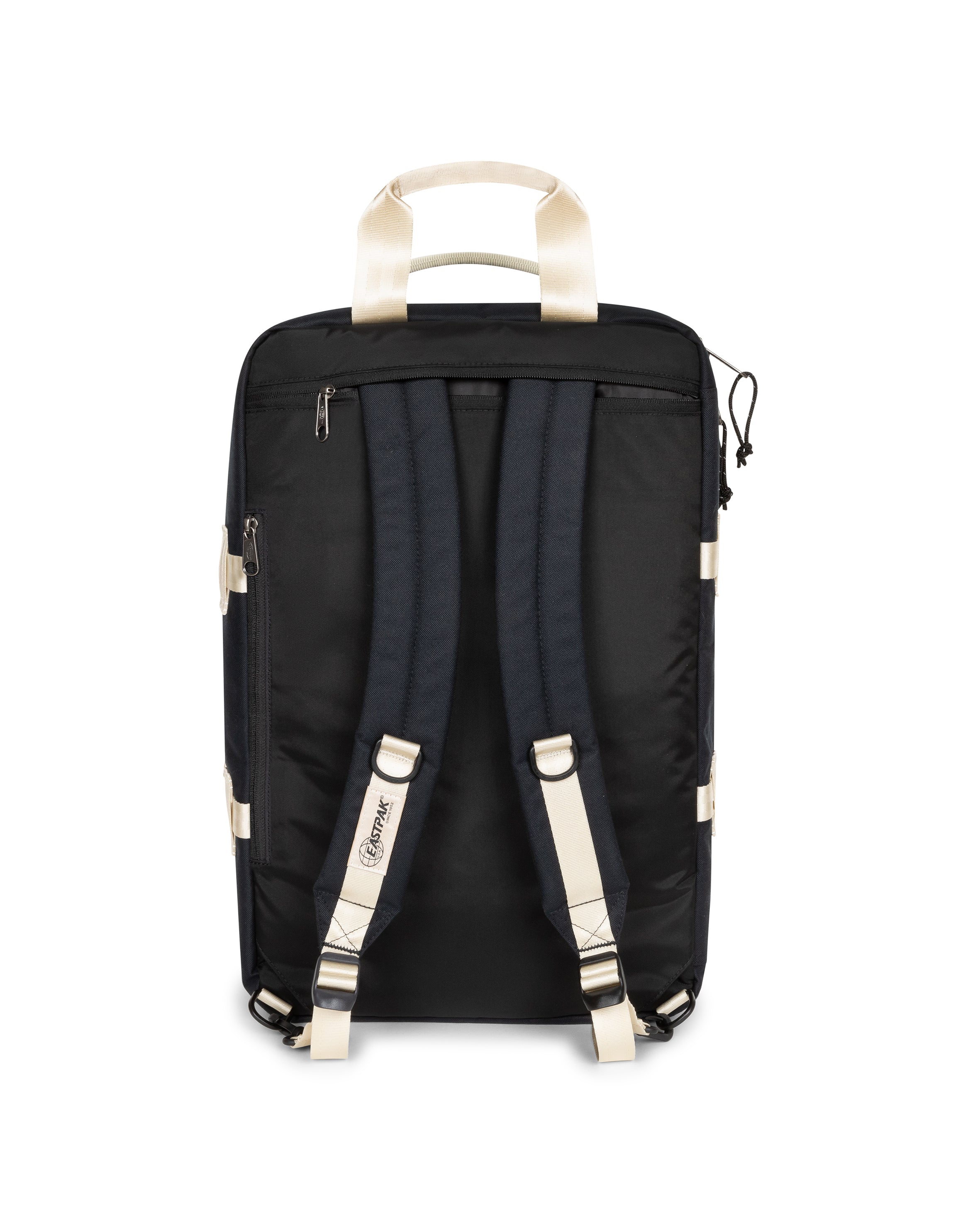 Our 2-in-1 luggage nods to our American heritage with vintage travel patches and the retro Eastpak logo. This versatile cabin bag can be carried as a backpack or hauled as a duffle bag. Use the built-in laptop sleeve to protect your tech when you're on the move.
